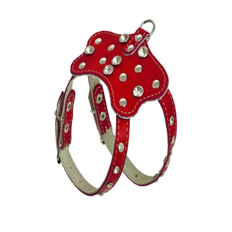 Перламутр :Комплект для декоративних порід прикрашений стразами. Матеріал - шкіра декор; шкіра спилок. Шлейка: Ширина 10 мм, довжина (А) 18-24 см, довжина (У) 28-34 см Довжина приводу 120 смРозмір породи тварин: Дрібні