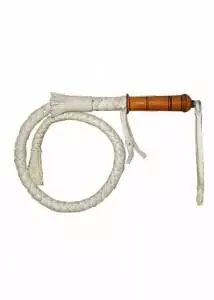 Тин. Матеріал : шкіра.Батіг — тип ударного знаряддя, головним елементом якого є довгий плетений ремінь з сиром'ятної шкіри. У кінному спорті застосовується для підганяння тварини. Головним елементом батога є довгий плетений шкіряний ремінь круглого перерізу, який поділяється на власне плетену частина (або тіло батога), фол і крекер. Тіло сплітається з довгих смуг шкіри і поступово тоншає до кінця, на якому кріпиться вузький ремінь — фол; до фолу кріпиться крекер, що складається з кінського волосу або синтетичних матеріалів. При нанесенні удару з замахом по мірі витончення кінець батога і в особливості фол розвинути надзвукову швидкість, з-за чого крекер виробляє характерний гучний звук, що нагадує клацання або бавовна. Цей клацання лякає рогата худоба, що і використовують пастухи. Батоги так само можуть бути з інших матеріалів, наприклад з синтетичних стрічок або мотузок, інші матеріали менш поширені.