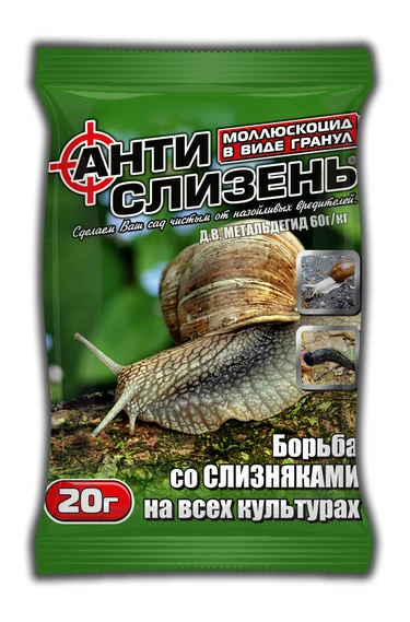 Гранули розсипати по поверхні грунту міжрядь, доріжок у місцях пересування, притулку та розмноження шкідників).