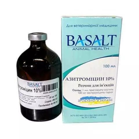 Азитроміцин - антибіотик групи макролідів, підгрупи азалідів, широкого спектра дії, який надає бактерицидну / бактеріостатичну дію на грамнегативні (Actinobacillus lignieresi, Haemophilus spp, Moraxella spp, Bordetella spp, Campylobacter spp, Legionella pneumophila, Salmonella spp, Escherichia spp) і грампозитивні бактерії (Listeria spp, Staphylococcus aureus, Staphylococcus spp, Streptococcus spp, Streptococcus pneumoniae, Streptococcus pyogenes, Enterococcus faecalis, Erysipelothrix insidiosa) і деякі анаеробні бактерії: Сlostridium perfringens, Fusobacterium spp, Pasteurella (Mannheimia) haemolytica, Pasteurella multocida, Haemophilus parasuis , мікоплазми (Mycoplasma pneumoniae), Chlamydia pne umoniae, спірохети (Borrelia spp.). Механізм дії азитроміцину пов'язаний з гальмуванням біосинтезу білка рибосомами бактерій (порушується утворення пептидних зв'язків між амінокислотами і пептидной ланцюгом). Азітроміцин володіє широким спектром дії.