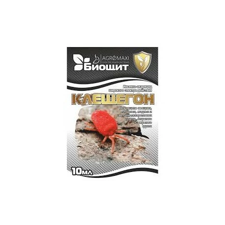 Препарат від кліщів - Биощит Клещегон 10 млКлещегон 10 мл – Акарицид, який відрізняється блискавичним і згубним ефектом для шкідників. Засіб використовується для захисту плодових, квітково-декоративних, ягідних, а також овочевих культур. Речовина не викликає резистентності завдяки удосконаленій формулі.