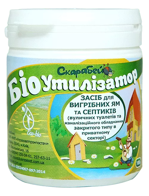 Біоутилізатор "Скарабей" - це високоефективна композиція адаптованих до специфічного середовища бактерій. Оптимально підібраний склад біопрепарату та висока ферментативна активність композиції бактерій дозволяють швидко утилізувати всі типи побутових органічних відходів. При внесенні до вигрібної ями мікроорганізми активно розкладають залишки, накопичені в результаті експлуатації. При цьому поступово зменшується вміст твердих фракцій (фекалій) та відновлюється дренаж ґрунту. Наявність миючих засобів, за винятком засобів хлору типу «БЕЛИЗНИ», не впливає на швидкість біологічного розкладання. Спорові культури, що входять до складу препарату, володіють також антагоністичною активністю до хвороботворної мікрофлори, що сприяє знезараженню органічних відходів.