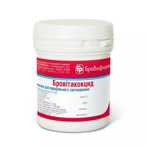 1 г препарату містить: ампролиума гідрохлорид — 125 мг, вікасол — 2 мг, вітамін А — 10 000 МО.