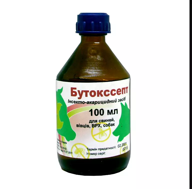Препарат бутокссепт згубно діє на саркоптоидни, аргасовые, іксодові, коростяні кліщі, мелофагоз, вошей, волосоїдів, зоофильный мухи та інших ектопаразитів у ВРХ (великої рогатої худоби), овець, свиней, собак.