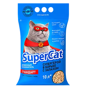 SuperCat - натуральний деревне наповнювач для котячого туалету. Дерев'яні гранули SuperCat виготовлені з натурального матеріалу, тому не містять мінерального пилу, який так небезпечний для дихальних шляхів не тільки тварин, а й людей. Гранули SuperCat не токсичні та не викликають алергічних реакцій на шкірі у домашніх вихованців.Переваги
