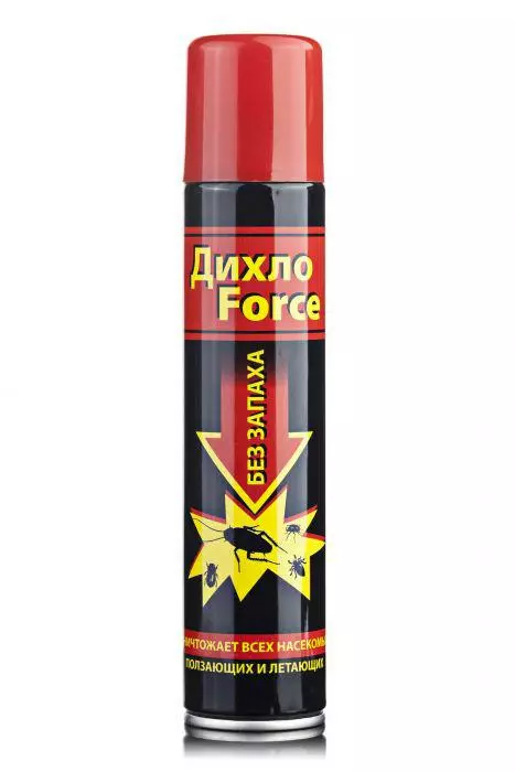 Ефективний інсектицидний універсальний засіб побутового призначення "Дихло Force" 200 мл без запаху широкого спектру дії застосовується проти всіх відомих комах. Цей дихлофос має 3 діючі компоненти. Характеризується короткочасним терміном дії з високою початковою токсичністю для кліщів, попелиць, молодих личинок та дорослих особин лускокрилих та мух, виявляє овіцидну дію (вплив на личинки-яйця мух та вошей).