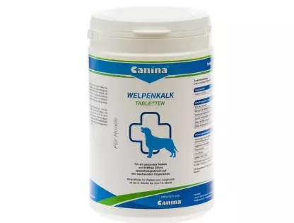Canina Welpenkalk – мінеральна добавка для цуценят, створена спеціально для організму, що росте, що забезпечує оптимальний розвиток скелета і зубної системи. Welpenkalk розроблений на основі наукових відкриттів, відповідно до рецептури доктора Клауса, із співвідношенням кальцію та фосфору 3:1, що забезпечує повною мірою надходження кальцію в організм.Склад