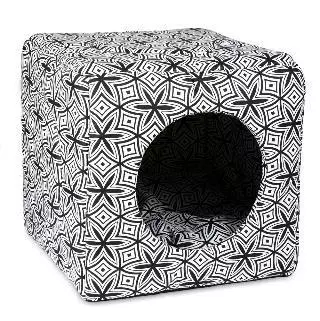 Домик для котов и собак небольших пород «Фантазия» благодаря универсальному дизайну и оригинальному черно-белому рисунку ткани отлично впишется в любой интерьер. Он очень уютный и мягкий благодаря поролоновому наполнителю, а также бюджетный и практичный.Місце для відпочинку «Фантазія» відрізняється: