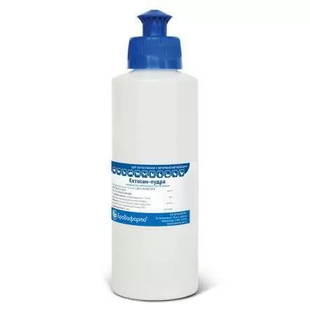 Ектосан-пудра – порошок світло-сірого кольору, дрібнодисперсний, зі слабким специфічним запахом.Склад