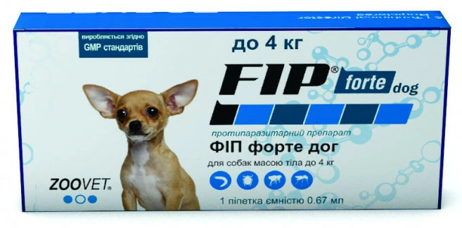 FIP forte dog (ФІП форте дог) краплі від бліх, кліщів і комарів для собак до 4 кг 1 піпетка, Zoovet