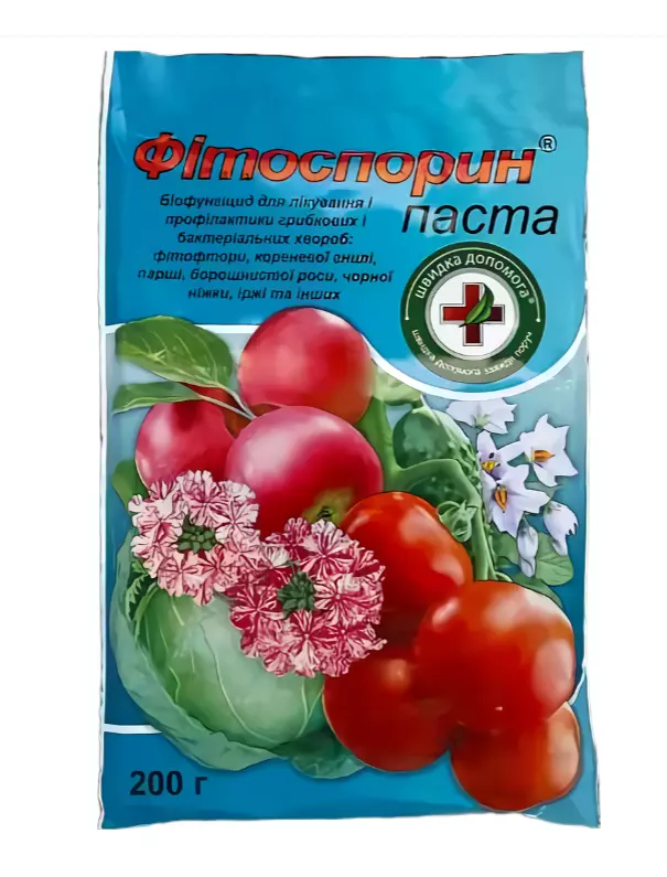 ОписФітоспорин-М паста – мікробіологічний препарат призначений для захисту городніх, садових, кімнатних та оранжерейних рослин від комплексу грибних та бактеріальних хвороб (фітофторозу, кореневої гнилі, парші, борошнистої роси, чорної ніжки, іржі, альтернаріозу, фузаріозу та ін). Крім захисної та профілактичної функції, має імуностимулюючі та антистресові властивості, посилює захисні функції рослин при несприятливих факторах навколишнього середовища (різкі перепади температур, заморозки, посуха та ін.)