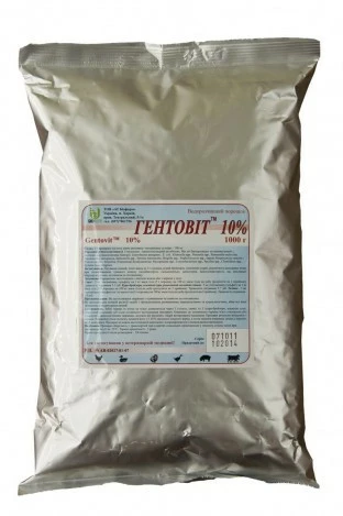 Гентаміцин, що входить до складу препарату Гентовит ® 10%, відноситься до аминогликозидным антибіотиків. Він діє бактерицидно на грамнегативні і, частково, на грампозитивні бактерії: Enterobacter aerogenes , E. colі , Klebsіella spp., Neіsserіa spp., Pasteurella multocіda, Pseudomonas аегидіпоѕа, Salmonella spp., Serratіa marcescens, Shіgella spp., Staphylococcus spp., окремі Streptococcus ѕресіеѕ і Proteus ѕресіеѕ, Serpulіna (Treponema) hyodysenterіae, Mycoplasma spp., Corynebacterіum spp., Bacіllus spp., Clostrіdіum spp., Lysterіa monocіtіgenes. Гентаміцин гальмує синтез білків в клітинах бактерій. Він майже не всмоктується у кров і тому діє лише в органах травної системи. «Гентовит 10%» не надає токсичного впливу на організм тварин, не викликає негативних наслідків навіть при перевищенні рекомендованих доз у декілька разів. Препарат не має мутагенну, канцерогенну і тератогенну діями.