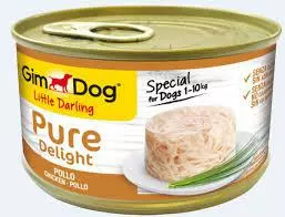 GimDog Pure Delight - натуральний консервований корм, який розроблений спеціально для собак маленьких порід (до 10 кг). Ніжні шматочки курячого філе, багаті білком, приготовані в чудовому желе, що не залишить байдужим навіть самих вибагливих собачок. Корм GimDog Pure Delight ідеально підходить для чутливих собак з особливими потребами. До його складу не входять пшениця, клейковина або соя.Склад