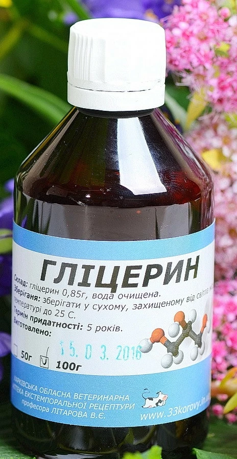 Засіб із пом'якшувальною та захисною дією. Гліцерин має пом'якшувальну дію на шкіру. Гліцерин також використовується як розчинник для борної кислоти, бури, протарголу, таніну. Гліцерин практично не проникає крізь шкіру, але чудово проникає через слизові оболонки.