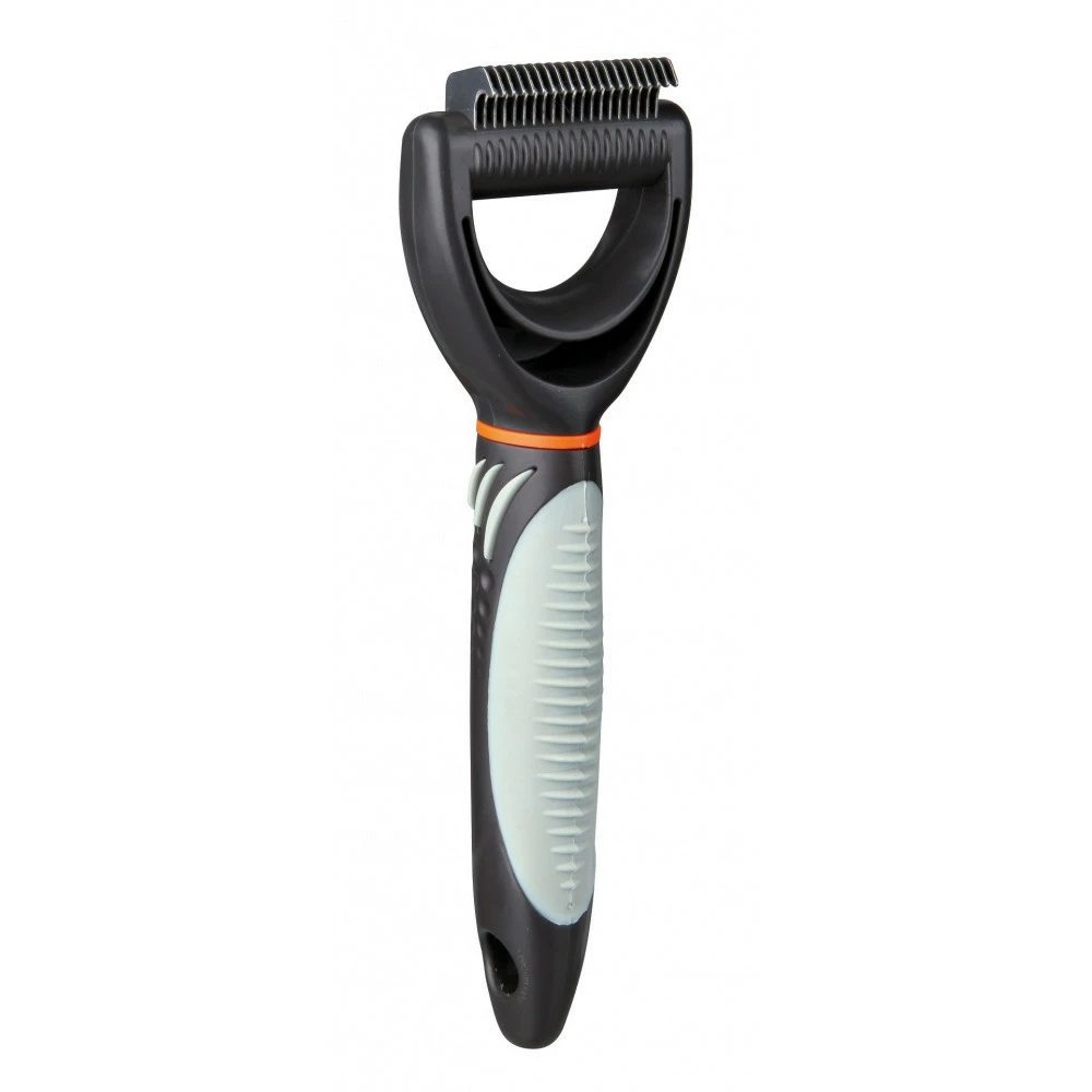 Грумінг ковтуноріз універсальний 5*18см 24240 Тріксі - зручний ковтуноріз для швидкого проріджування і видалення сплутаних в ковтун шерстинок. Спеціальна форма зубчиків не травмує шкіру. Зручна ручка з гумовими вставками не ковзає в руці.