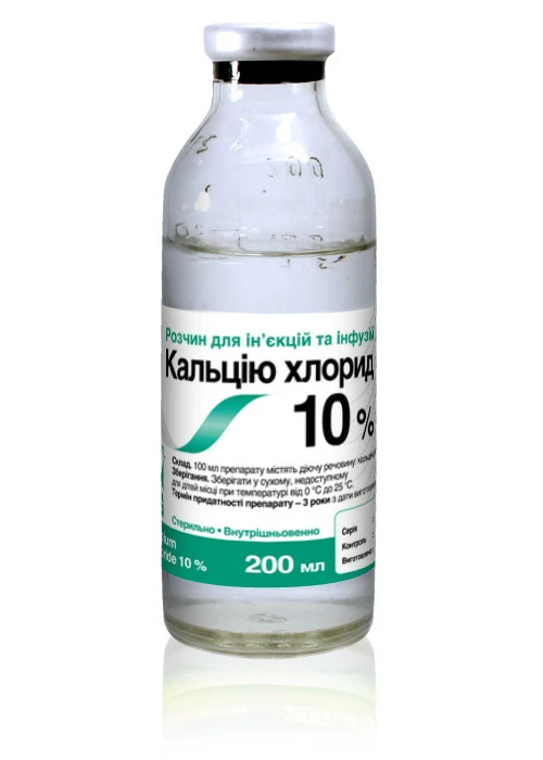 Склад та форма випускуПрепарат є прозорою безбарвною рідиною, містить кальцію хлорид воду для ін'єкцій. Скляні флакони по 100мл.