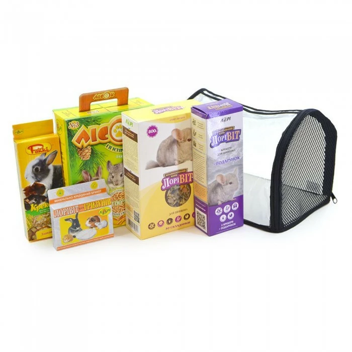 Комплект №3 Переноска для шиншилСклад: Лісок-3 (1,5 кг) -1штЛоривит + корм для шиншил 800г -1шткрекер Лоривит для середніх гризунів (фруктовий) -1уп крекер Р овочевий-1уп лоривит для гризунів 40г - 1штОплата та доставка