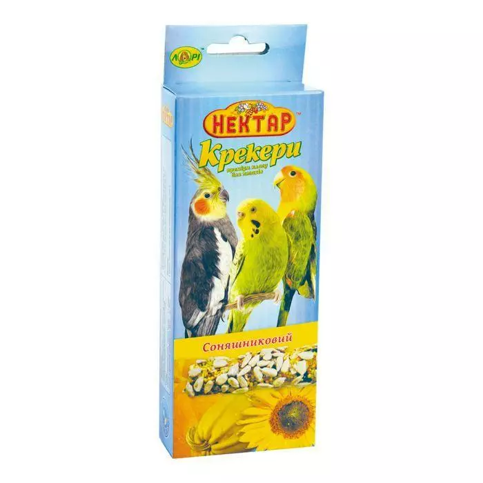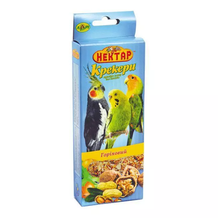 Серія крекерів для птахів преміум класу Нектар представлена 12-ма видами смаків, не мають аналогів. Крекери розфасовані по 2 штуки (по 50 г) в пачці. Крекери мають зручне і надійне вакуумна упаковка, яка захищає продукт від вологи, запобігає пошкодження комахами і паразитами.