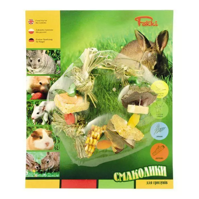 СМАКОЛИК ДЛЯ ГРИЗУНІВ №2 Яскраві, сучасні, зручні, якісні ласощі для гризунів в герметичній упаковці. Смаколики - це поєднання приємного смаку, сучасних технологій і теплоти людських рук. Ви зможете використовувати іграшку для гризуна як до поїдання делікатесів, так і після. Містить зернові крекери різних смаків, сублімовані овочі і фрукти, шматочки шкіри і дерева.Оплата та доставка