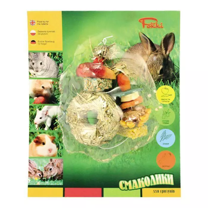 СМАКОЛИК ДЛЯ ГРЫЗУНОВ №4 Яскраві, сучасні, зручні, якісні ласощі для гризунів в герметичній упаковці. Смаколики - це поєднання приємного смаку, сучасних технологій і теплоти людських рук. Ви зможете використовувати іграшку для гризуна як до поїдання делікатесів, так і після. Містить зернові крекери різних смаків, сублімовані овочі і фрукти, шматочки шкіри і дерева.Оплата та доставка
