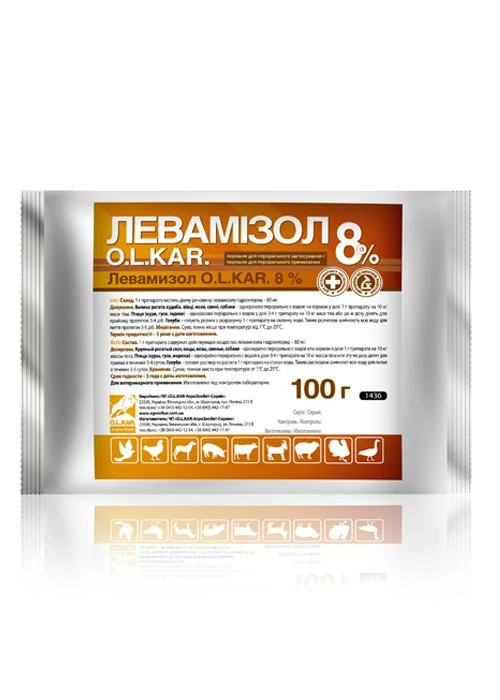 Левомізолу гідрохлорид ― лівообертаючий ізомер, належить до групи імідазолів і є біологічно-активним похідним тетрамізолу. Гальмуючи фермент ацетилхолінестсразу, блокує утворення АТФ, впливає на нервово-м язову систему паразита, що викликає скорочення його м язів і параліч, що призводить до загибелі паразитів вже в перші 12-24 години після введення, У печінці тварин левамізол трансформується в оксимеркаптоетилфеніл-імідазолідин, який позитивно впливає на імунну систему ссавців і птахів.