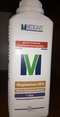 Енрофлоксацин - 100, 1 л - препарат орального застосування для лікування свиней, телят у віці до 2-х місяців, собак, кішок і домашньої птиці: курчат, курей-бройлерів, індиків.
