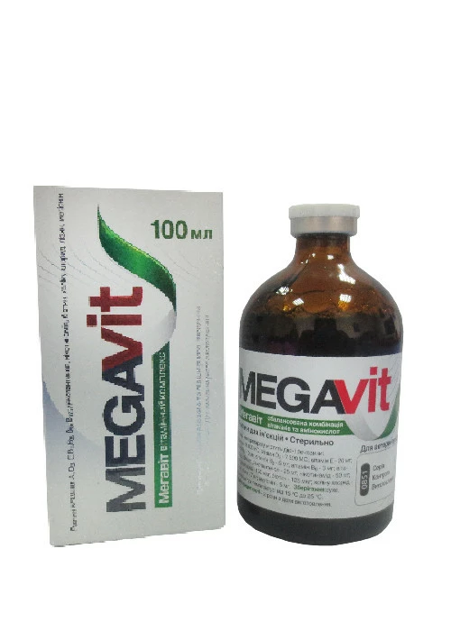 вітамін А – 15000 МО; вітамін D – 3 7500 МО; вітамін Е – 20 мг; вітамін В1 – 10 мг; вітамін В2 – 5 мг; вітамін В6 – 3 мг; вітамін В12 – 60 мкг; декспантенол – 25 мг; нікотинамід - 50 мг; фолієва кислота – 150 мкг; біотин – 125 мкг; холіну хлорид - 12,5 мг; лізин – 7 мг; метіонін – 5 мг. допоміжні речовини: до 1 мл.