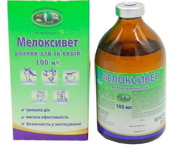 Мелоксивет використовують як протизапальний та аналгетичний лікарський засіб великої рогатої худоби при діареї у поєднанні з регідраційною терапією, при гострих респіраторних інфекціях, гнійно-катаральному маститі в комплексі з відповідною антибактеріальною терапією, а також при запальних процесах опорно-. Свиням при порушеннях функцій опорно-рухового апарату, пов'язаних із запальним процесом неінфекційної етіології, при терапії післяпологового сепсису та синдрому мастит-метрит-агалактія у комплексі з відповідними антибактеріальними препаратами. Коням при хронічних та гострих хворобах опорно-рухового апарату та коліках як протизапальний та аналгетичний засіб.