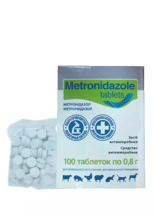 Лікування великої рогатої худоби, овець, свиней, хутрових звірів, собак, котів та птиці хворих на трихомоноз, дизентерію, діарею, коліт, стоматит, а також при захворюваннях органів дихання, сечостатевої системи, травного каналу та шкіри, що викликані мікроорганізмами, чутливими до метронідазолу.