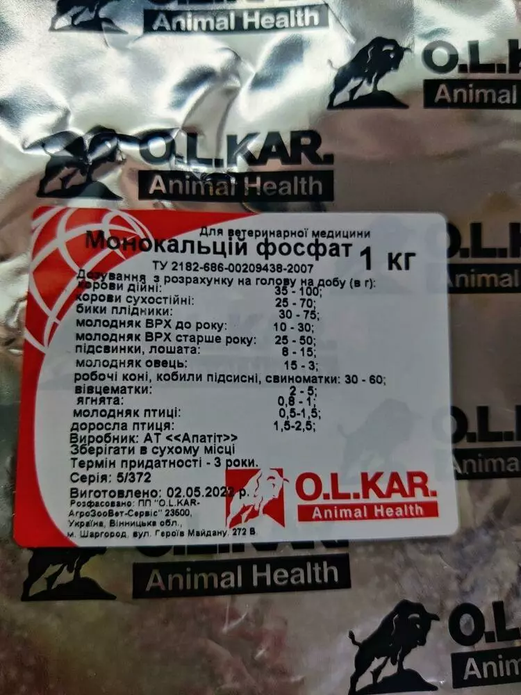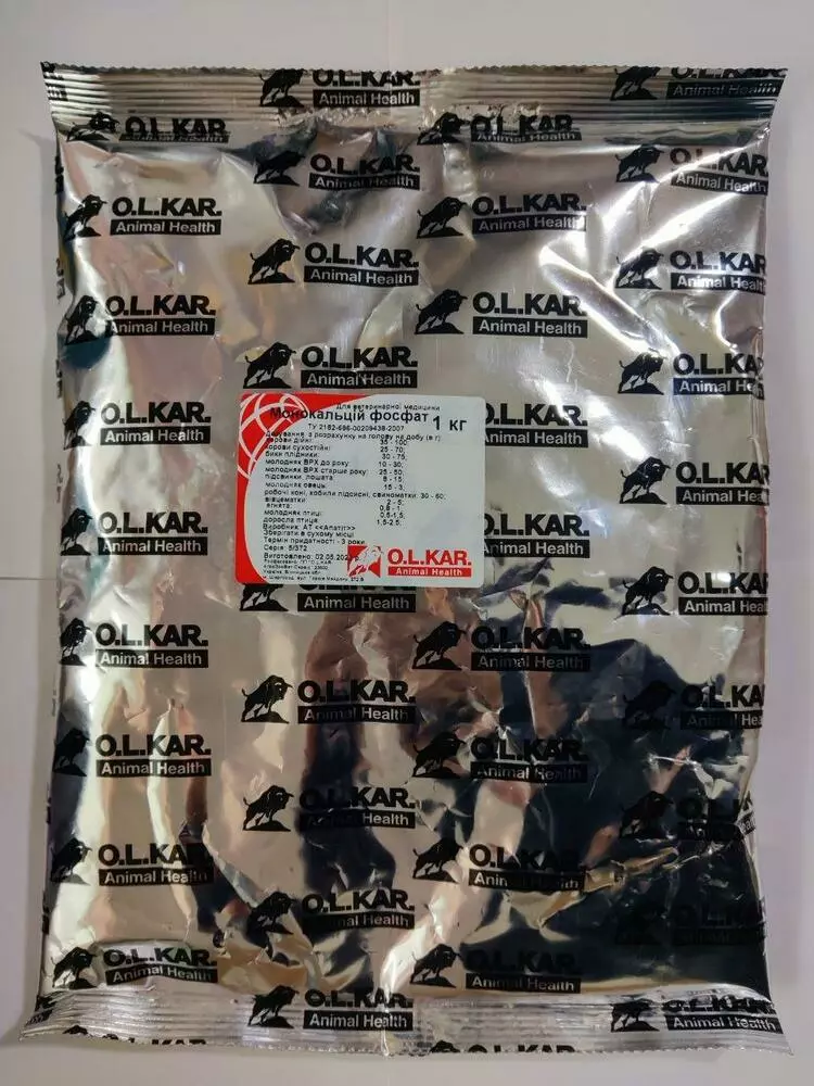 Монокальційфосфат - кормовий монокальційфосфат є незамінним джерелом фосфору і кальцію для сільськогосподарських тварин на всіх стадіях розвитку. Для жуйних це найефективніша фосфорна добавка. Її включають в концентратні суміші (не комбікорм) або присмачують нею силос жом, подрібнені коренеплоди. Вводитися в раціон поступово протягом 5 - 10 діб.Позитивні сторони кальцію, в якому міститься в монокальційфосфат: