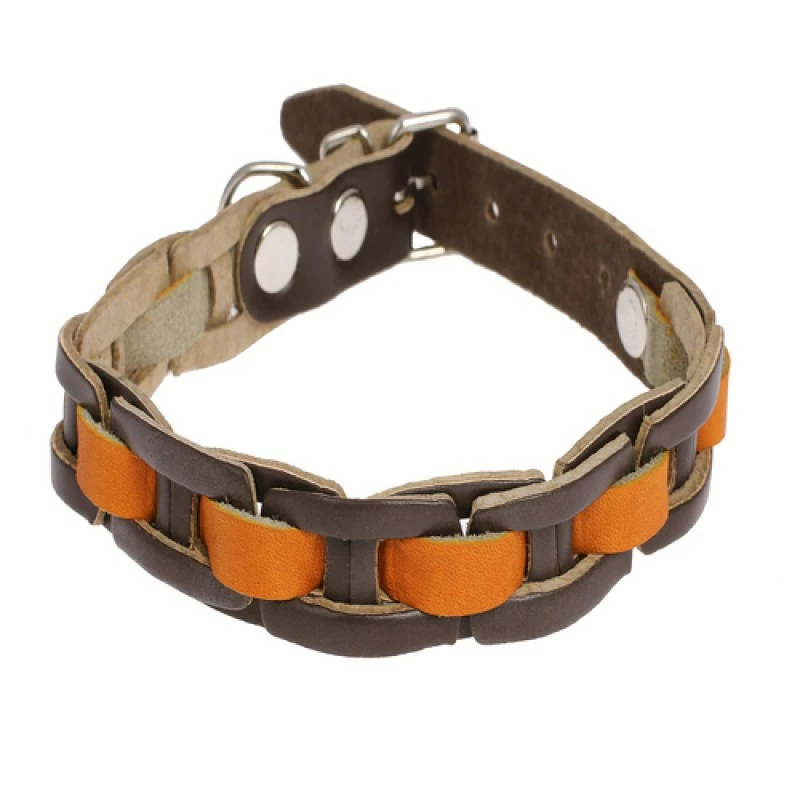 Колір: коричневий, чорний, помаранчевийНашийник КЛАСИК шкіряний складовою . Матеріал - шкіра ремінна.