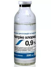 Загальні відомостіНатрію хлорид ізотонічний 0,9% розчин – лікарський засіб у формі розчину для ін'єкцій, що містить у 100 мл як діюча речовина 0,9 г натрію хлориду, а як розчинник воду для ін'єкцій.