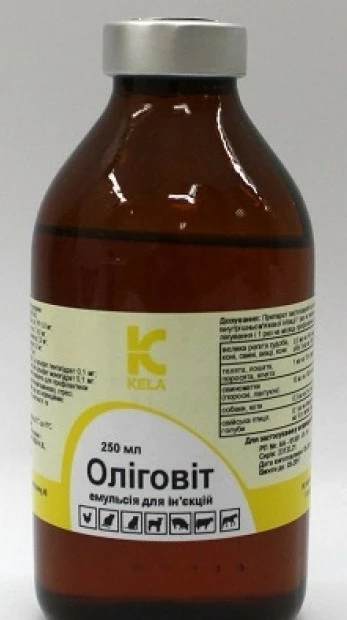 Вітамін A 50 000 I.U., Вітамін PP 5 мг, Вітамін D3 25 000 I.U., Вітамін B12 0.01 мг, Вітамін B1 10 мг, Вітамін E 4 мг, Вітамін B2 0.04 мг, Холіну хлорид 5 мг, 2 Вітамін B , Mагній 1 мг, Мідь 0.1 мг, Цинк 0.1 мг, Кобальт 0.02 мг, Марганець 0.1 мг, Пантотенол 2 мг, Метіонін 5 мг, Excipients up to 1 ml.