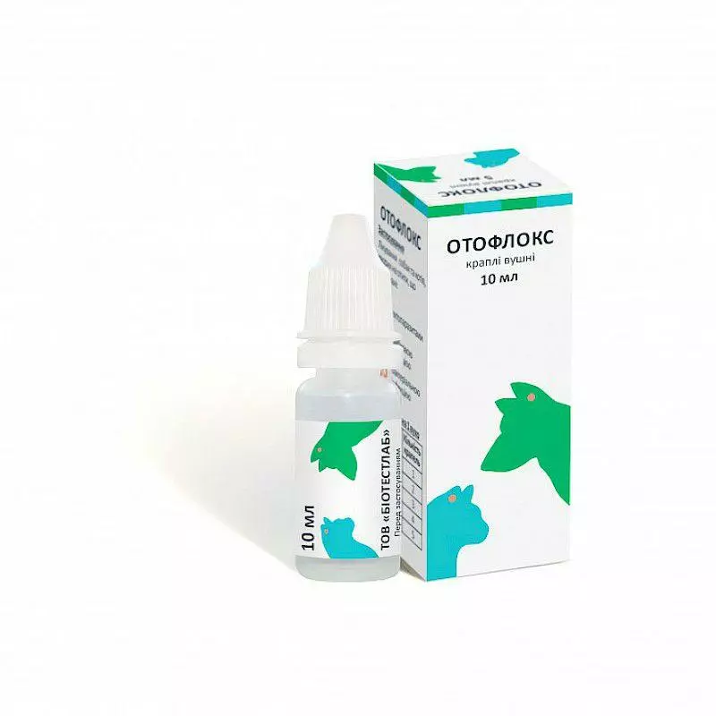 Препарат ОТОФЛОКС призначений для лікування дрібних непродуктивних тварин (собак, котів та декоративних кроликів) при отитах різної етіології, у тому числі спричинених ектопаразитами та/або ускладненими грибковою або бактеріальною інфекціями.