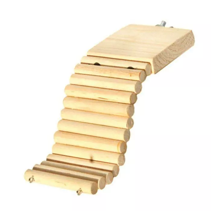 ПОЛИЧКА-ТРАНСФОРМЕР Дерев'яний гнучкий місток. Починається поличкою з клямкою і закінчується металевими гачками, які фіксують конструкцію на сітці клітини.Додатковий аксесуар урізноманітнює апартаменти клітини і додасть пухнастим жителям простору для ігор і розваг.