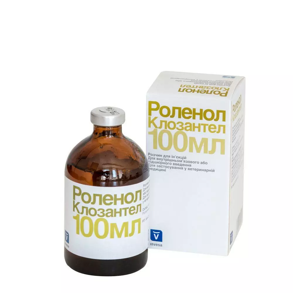 1 мл/10 кг живої ваги (5 мг клозантела/кг) при випадках гіподерматозу.