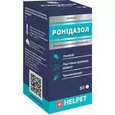 Ронідазол 30 мг упаковка №50 таблеток HELPET Ветсинтез (1 таблетка на 1 кг ваги) (термін придатності до 05,2027 р)