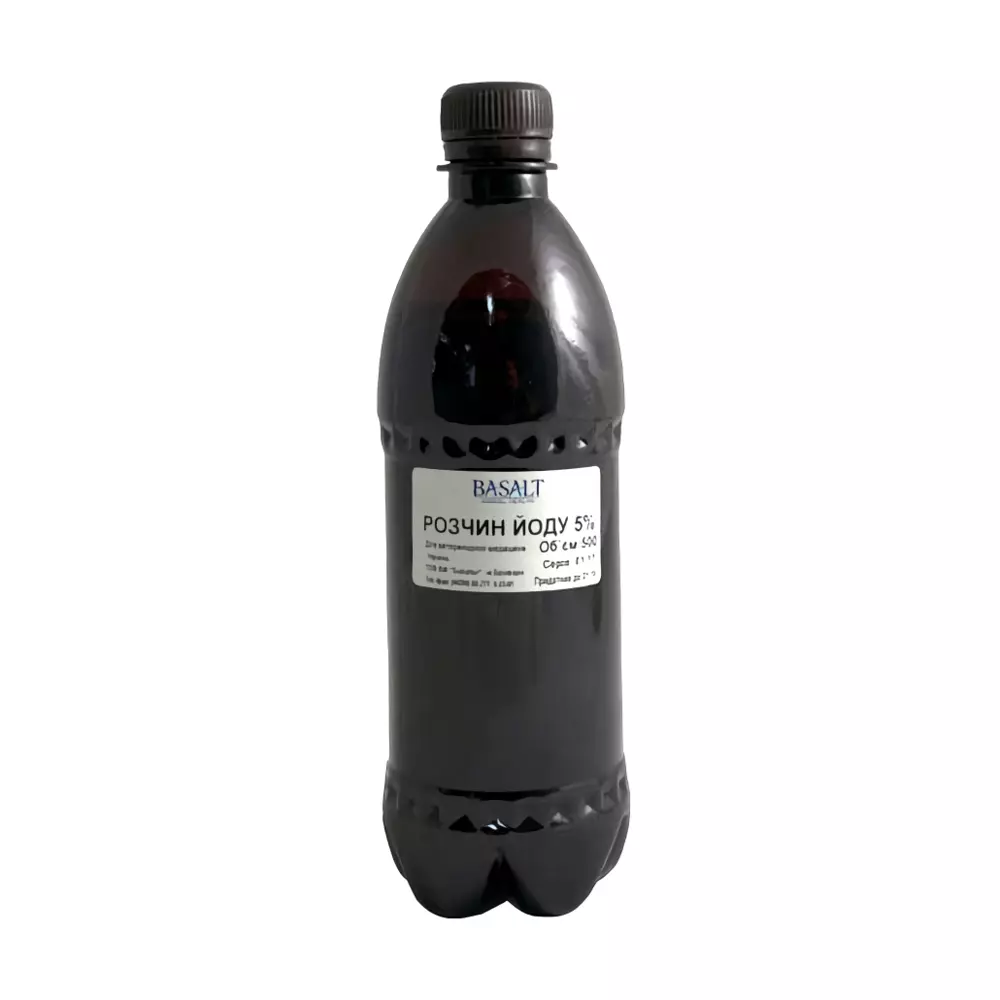 Розчином йоду спиртового 5% змазують уражену поверхню, зокрема операційне поле, мигдалики, травмовану шкіру чи слизову оболонку та ін.