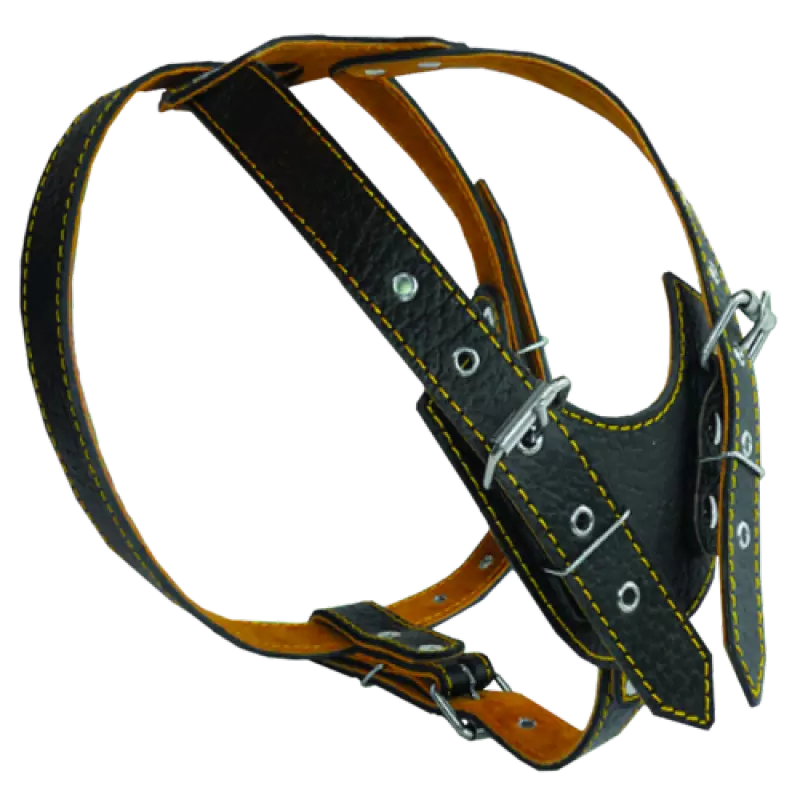 Шлея КЛАСИК шкіряна подвійна. Матеріал - шкіра ремінна; шкіра спилок.Ширина 35 мм, довжина (А) 56-84 см, довжина (В) 81-102 см.
