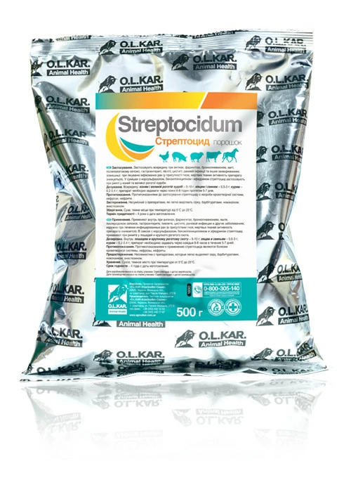 Всередину: коням та великої рогатої худоби 5-10 г; вівцям та свиням 0,5-3 г; курей 0,2-0,4 г; препарат слід задавати через кожні 6-8 годин протягом 5-7 днів.