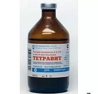 Фармакологічні властивості: Тетравіт – комплексний полівітамінний препарат, який застосовується для корекції та нормалізації обмінних процесів у тварин. Вітаміни, що входять до складу препарату, беруть участь у біохімічних процесах в організмі тварин.
