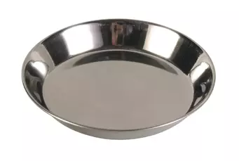 Металева миска Тріксі з невисокими бортиками для котів. Ідеально підійде для води та вологого корму.