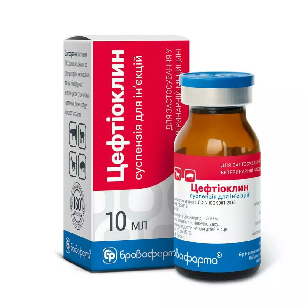 - велика рогата худоба, вівці, кози — підшкірно або внутрішньом’язово, 1 раз на добу, у дозі 1 мл на 50 кг маси тіла (1 мг цефтіофуру гідрохлориду на 1 кг маси тіла), курс лікування при захворюваннях органів дихання — 3-5 днів, при некробактеріозі — мінімум 3 дні, при гострому ендометриті — 5 днів;