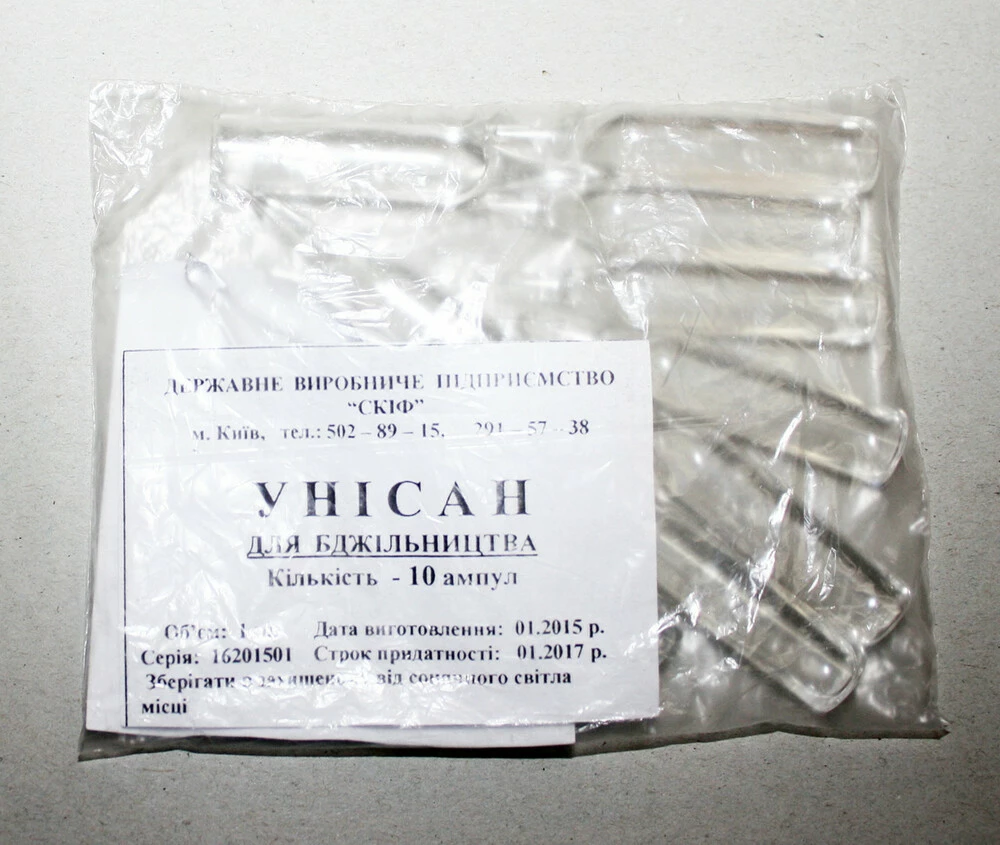 Унисан №10 ампули Скіф.Для лікування і профілактики аскофероза і аспергильоза бджіл.