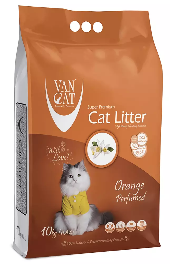 Наповнювач Van Cat Super Premium Quality виготовляється з натурального білого бентоніту (природний глинистий мінерал), активованого за допомогою кальцинованої соди із застосуванням подвійного просіювання для усунення пилу.Особливості