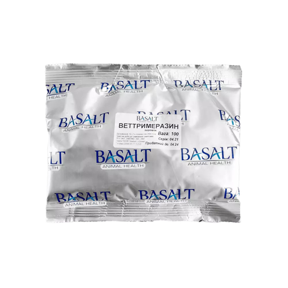 100 г порошку містить діючі речовини: сульфадимезин —10 г, триметоприм — 2 г, наповнювач до 100 г.