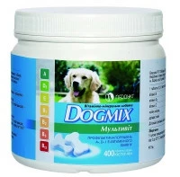 ВМД DOGMIX мультивіт (400 табл)Містить в складі вітаміни А, D3, Е, а також холін хлорид, пивні дріжджі (вітаміни групи В), лактозу.