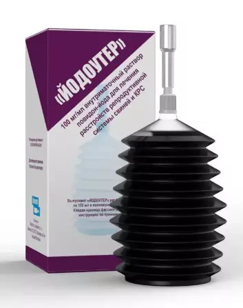 Препарат застосовують внутрішньоматково за допомогою одноразового катетера у дозі 150 мл шляхом стискання гофрованого флакона.