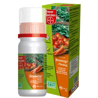 Зенкор® Ліквід - високоефективний системний гербіцид для боротьби з дводольними та злаковими бур'янами при вирощуванні картоплі, томатів та моркви. Зенкор® Ліквід - гербіцид, що діє як через листя, так і через ґрунт. Знищує бур'яни, що вже зійшли, а також ті, що проростають. Ранне знищення бур'янів сприяє тому, що тільки культурні рослини отримують поживні речовини, воду і світло для безперешкодного розвитку. , будяки жовтоцвітні, гірчиці польової, осота городньої, зірочки середньої - і проти однодольних бур'янів - лисохвіст польового, вівсюга, ситі їстівні, курячого проса, селянського проса, райграсу, миші. Ефективність препарату зростає при підвищенні температури повітря та ґрунту і досягає свого оптимуму при 20-25°С.