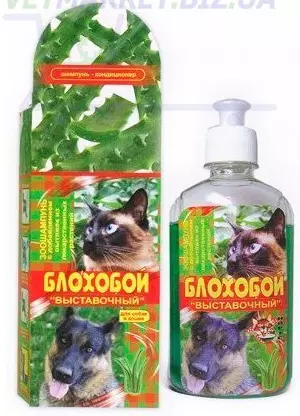 Виставковий шампунь містить комплекс витяжок із цілющих рослин. Завдяки оригінальній рецептурі цей шампуні не тільки борються з ектопаразитами тварин, але й дбайливо доглядають їхню вовну та шкіру. Вони знімають подразнення та свербіж шкіри, причиною яких є паразитування бліх та кліщів, нормалізують роботу сальних залоз, зволожують шкіру, роблять шерсть блискучою та м'якою.Для кого: призначені шампуні Блохобой (залежно від виду) для боротьби із зовнішніми паразитами у собак і кішок, для догляду за довгошерстними тваринами, для підготовки вихованців до виставок, для миття кошенят і цуценят.
